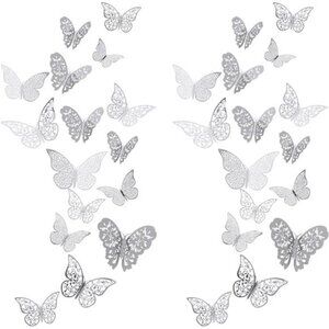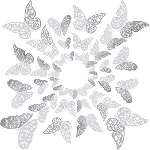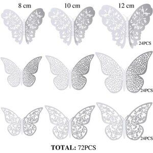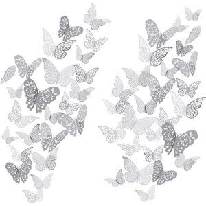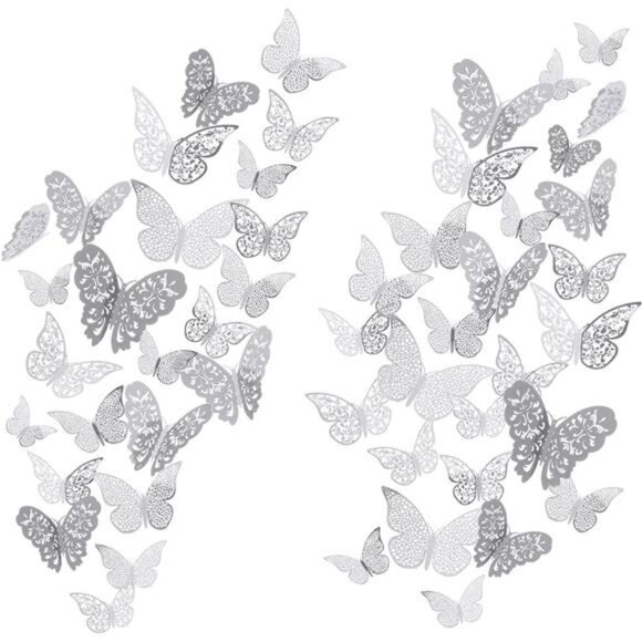 72 Pieces 3D Butterfly Wall Decals Sticker Wall Art Decorations Sticker Silver