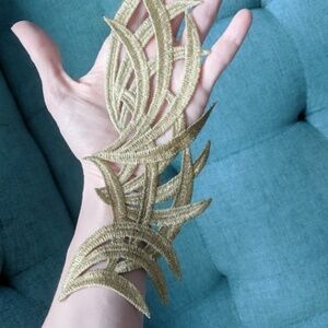 (7/$25) Gold embroidered lace filigree neckline Collar appliqué