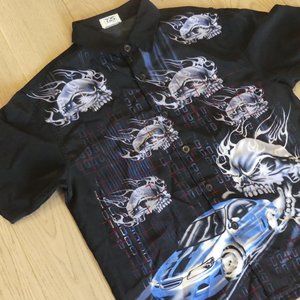 725 Originals Vintage Skulls Black Medium Short Sleeve Button Down Shirt