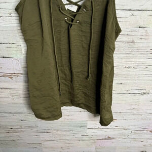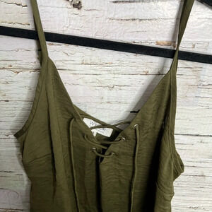 73. Wylder green blouse tank top lace up size small