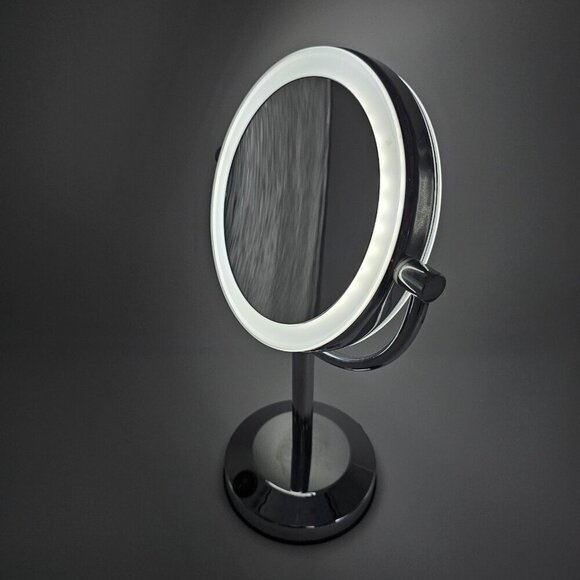 7.5" Double Sided Lighted Free-Standing Mirror, Chrome Finish