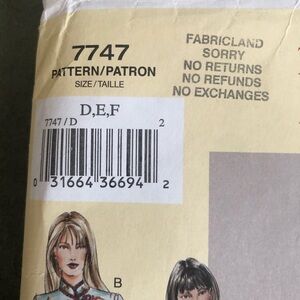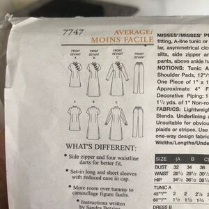 7747 VOGUE BETZINA MANDARIN TUNIC, DRESS, CROP PANTS PATTERN - sizes - D-E-F