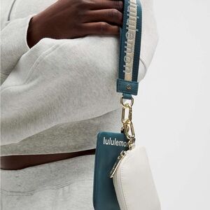 77&78 🆕💙 Lululemon Dual Pouch Wristlet Wordmark - Warp Teal Bone Gold