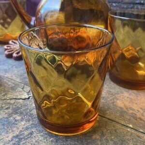 #nachocow #vintage #amberglass #hazelatlas #70s #juiceset #pitcher #glasses #gift #home #cottage