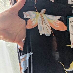 79.Nwt Roxy Floral Black Wide-Leg Pants