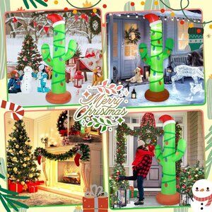 7FT Inflatable Christmas Cactus with LED Lights for Yard Lawn Holiday Decor