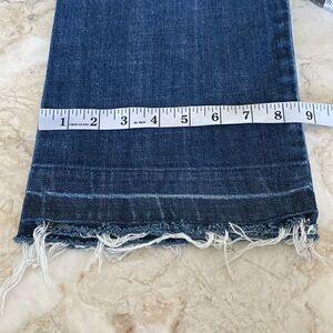 In very good preowned condition 7 For All Mankind jeans. The Standard is a modern straight fit jean in lightweight Japanese denim—features a faded medium indigo wash, classic 5 pocket styling, belt loops and button fly closure.