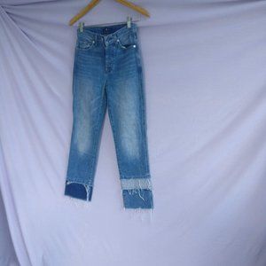 7fam Highrise Patchwork Raw hem Blue Jean 24w +MEASUREMENTS