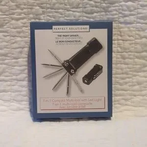 Brand new multi-tool with LED light. Has 6 fold out screwdrivers, light requires batteries but they come with the tool.