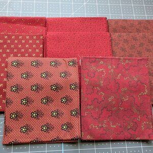 From Marcus Fabrics, this is a pack of 8 cotton fat quarters (each 18x21 inches). They all have a vintage vibe to them, and are new, unused condition and in coordinating shades of dark reds. These are perfect for your quilting and sewing projects!