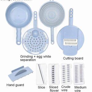 Interchangeable blades for different fruit and vegetables - grinder plate for ginger or garlic - egg separator and strainer basket