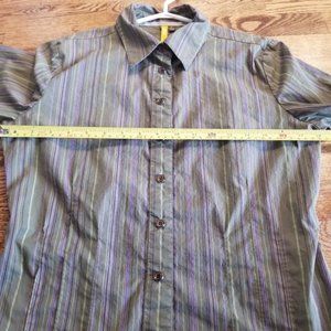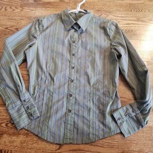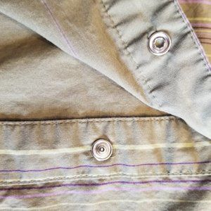 (8) Lole Snap Blouse Athleisure Adventure Outdoors Striped Green Casual