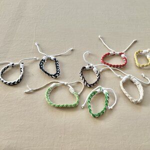 Red, beige, yellow, light green, dark green, navy blue, brown, black