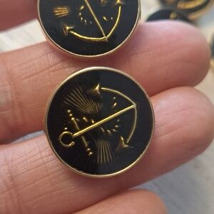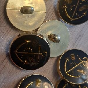 These buttons offer a touch of nautical charm with their classic anchor design. The combination of black and gold creates a striking visual contrast, perfect for adding a sophisticated yet seaworthy accent to various garments and crafts. Crafted from durable plastic, these buttons are not only aesthetically pleasing but also practical for everyday use. Their size and design make them versatile enough for a range of applications, from embellishing blazers and pea coats to adorning bags and decorative projects.
