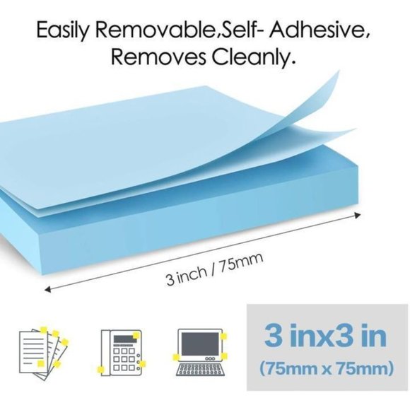 8 Pack 3"x3" Bright Color Self-Stick Sticky Notes