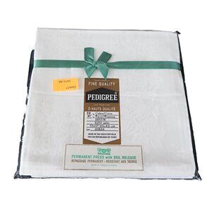 For your consideration are eight vintage Damask white napkins, never used and still sealed in the package, by Pedigree. There are four in the sealed package and are 59% cotton and 41% rayonne. Made in the Czechoslovakia..