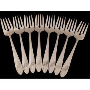 Set of 8 Tudor Plate Salad Forks in the Queen Bess II 1946 Pattern from Oneida Community