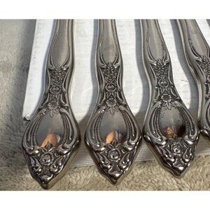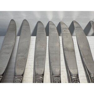 Elegant and durable, these vintage silver-plated dinner knives feature intricate floral handles. Ideal for enhancing table settings and formal dining occasions.