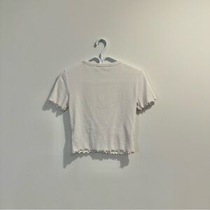 8 seconds | women's small white Button-Up Short Sleeve Top with ruffles