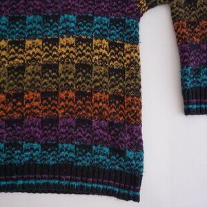 '80S Teal Purple Yellow 3D Eclectic Coogi Biggie Cosby Crewneck Knit Sweater L