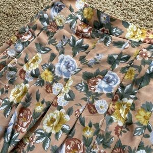 In excellent condition. Gorgeous neutral beige/ camel base colour. Marked a size 10- but definitely vintage sizing. Fits more like and 6-8. When laying flat waist is 13”, length is 34”. 100% polyester