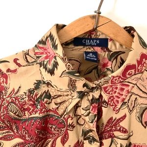 80’s 90’s Cotton Floral Paisley Blouse CHAPS Taupe Red Green Pink Beige Medium M