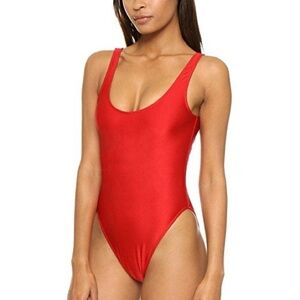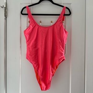 80s / 90s retro inspired hot pink scoop neck one-piece swimsuit - size XL