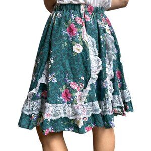 80s 90s vintage Pitchfork brand western skirt lace squaredancing circle floral.