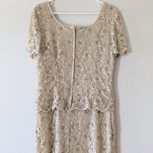 80s Beige Beaded Prom Dress Peplum Dress Floral Lace Formal Gown Vintage Dress