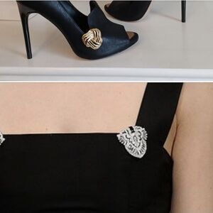 Elegant Black Ruffle Flower Button Shoe Dress Clips.