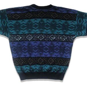 vintage 80s CLUB INTERNATIONAL BY TIP TOP TAILORS multi-color black purple teal all over print geometric striped oversized sweater sweatshirt jumper