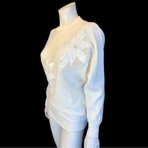 80s Cream POINSETTA Dolman Sleeve Beaded Sweater / M L