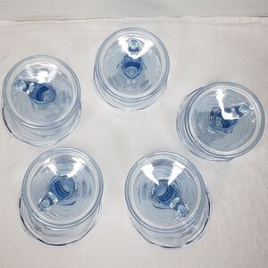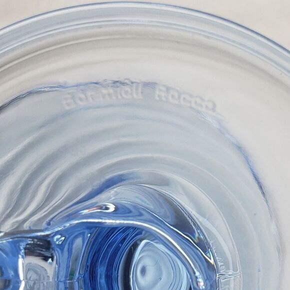 Set of 5 Clear Blue Asymmetrical Swirl Pattern Pedestal Horn Cornucopia Dessert Cups Parfait Glasses, by BORMIOLI ROCCO.