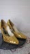 Gold lurex metallic fabric upper with polka dot shiny gold discs that catch the light