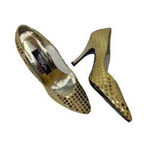 80s "Disco Ball" Gold Heels By Wild Nights Metallic Lurex Polka Dot Size 8