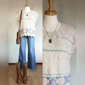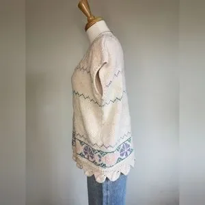 Adorable vintage 80s floral knit sweater. Super soft cotton