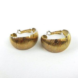 80s Golden Earrings | Gold Tone & Silver Metal Wide Hoop Earrings