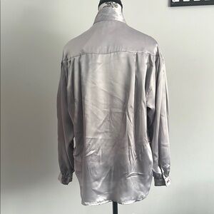 This gray satin blouse features a high mandarin collar and a smooth, flowing fit, perfect for a sophisticated look. The silky material adds a touch of elegance, making it ideal for formal occasions. Ptp 25 Lenght 28 No stretch Top Seller | ⭐ 5-Star Rated | ⚡ Fast Shipping Welcome to my closet — a curated mix of vintage, alt, and secondhand finds, all handpicked with care. Smoke-free, pet-free home. New to Poshmark? Use code clau_boutique at sign-up for $15 off your first order. Bundle to get a better deal + only pay one shipping fee. Open to reasonable offers — don’t be shy! Thanks for supporting a small local shop! 🖤