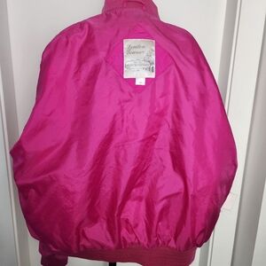 Vibrant fucshia pink zipup windbreaker jacket with side pockets and stretch ribbed detail, by London Towne.