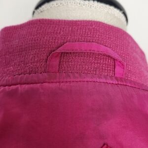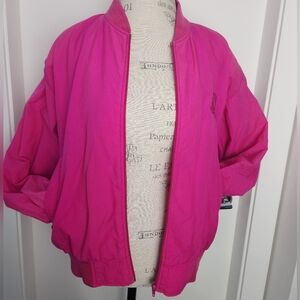 Vibrant fucshia pink zipup windbreaker jacket with side pockets and stretch ribbed detail, by London Towne.