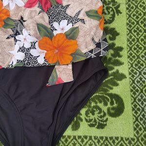 80s One Piece Tropical Swimsuit Floral Crossover Front With Plunge Low Back