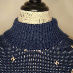 RARE Vintage late 1970s early 1980s navy blue & tan knit mockneck long sleeve jumper sweater with winged Pegasus & star pattern, by Jeffrey Rogers Canada.