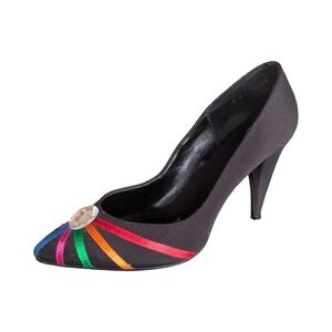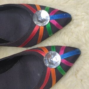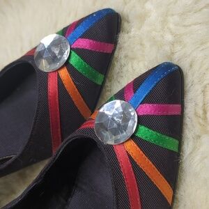 80s Rainbow Ribbon Pointed Heels Size 8 Large Embellishment