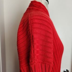 Cherry Red Ribbed Knit Vneck Sweater with Asymmetrical Cable Knit pattern, by forgotten Italian Designer IVANO BONI.