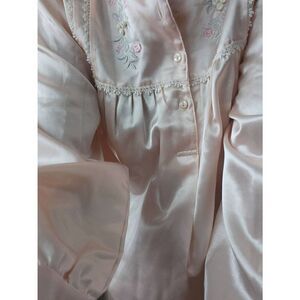 Gorgeous satin with brushed sift interior this is the cozies nighty with embroidery front collared neckline with buttons and fun puff sleeves in brand new condition