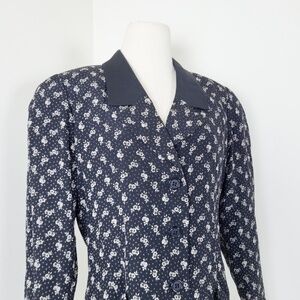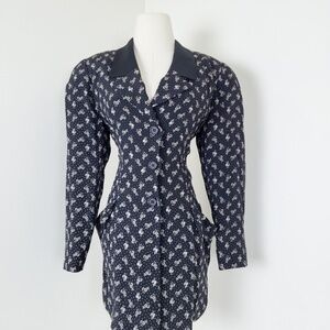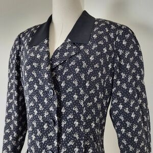 80's Silk Blazer Power Shoulder Button Down Long Sleeve Floral Oversized