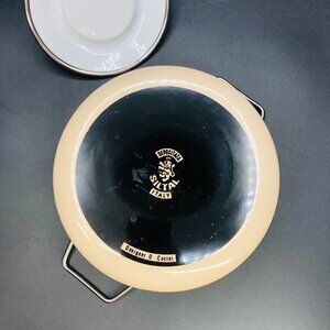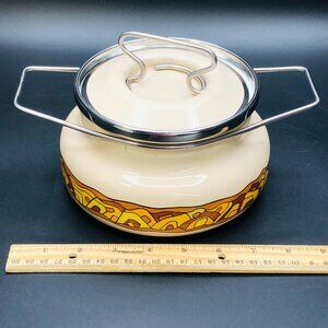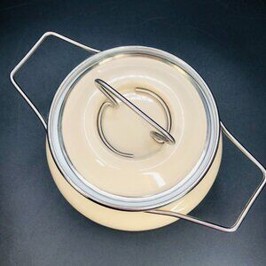 80s Siltal ITALY Beige Enamelware Fondue Pot with Lid by Designer O Cocini