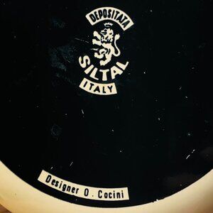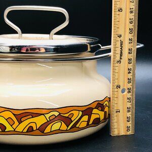 80s Siltal ITALY Beige Enamelware Fondue Pot with Lid by Designer O Cocini, Abstract Cheese Motif, Vintage Luxury Cookware, Retro Kitchen