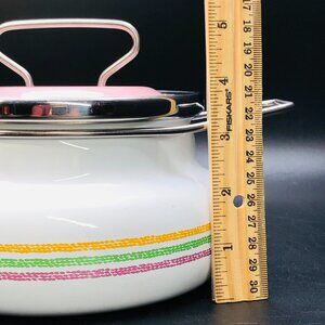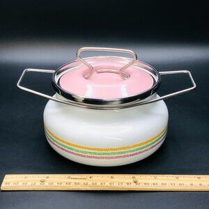 80s Siltal ITALY Pastelcore Enamelware Fondue Pot with Lid -Designer Carla Agnelli, Colorful Stripes, Vintage Luxury Cookware, Coquette Girl