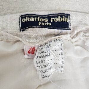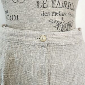 Creamy Beige Tan French Linen Checkered Weave Slacks Trouser Pants with Classic Front Button Fly and Side Pockets, by Charles Robin Paris.